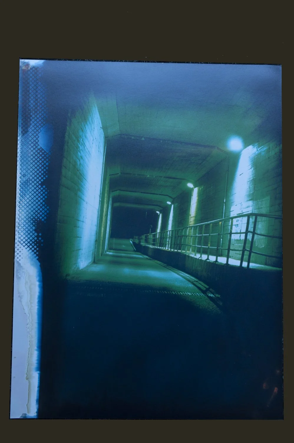The series is realised entirely in E6 colour reversal transparencies, a process that mirrors the project’s conceptual inversion. I also use expired film stock, whose altered colours produce distortions that echo the lived distortions of fear: no two images are the same, just as no two women’s negotiations with fear are alike. Each photograph becomes a unique residue of confrontation — a trace of both vulnerability and defiance.
